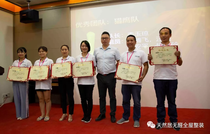天然居市場營銷總經理付東平為精英們頒發獲獎證書