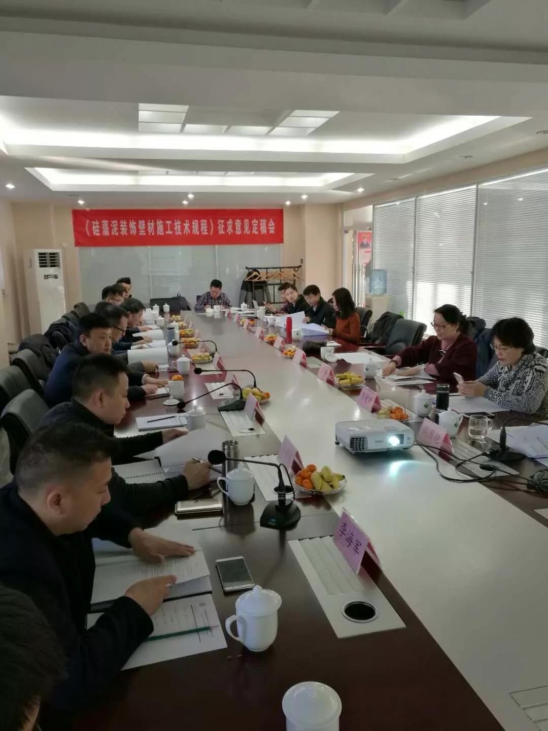 2018年1月9日,由中國建筑材料聯合會生態環境建材分會提出,中裝協涂料分會共同申請立項,各硅藻泥企業共同參與的《硅藻泥裝飾壁材施工技術規程》標準征求意見定稿會于北京朝陽區管莊東里1號中國建材研究總院綠建樓一層會議室圓滿舉行。