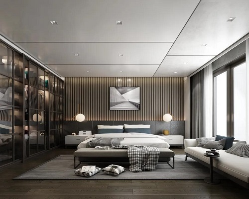 天然居全鋁大板,簡素雅的美,是經過一段歲月后,仍然有著耐看的質感,以低飽和度的顏色著色頂部空間,避免顏色的過分堆砌,使整個空間達到舒適平衡的感覺,打造出具有層次感滿分的家。